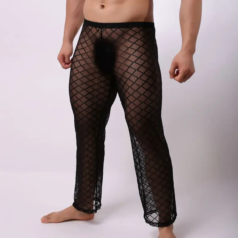 กางเกงสำหรับใส่บ้านใส่นอนสบายๆ ผ้าซีทรูมีลายตคารางเพิ่มความเซ็กซี่