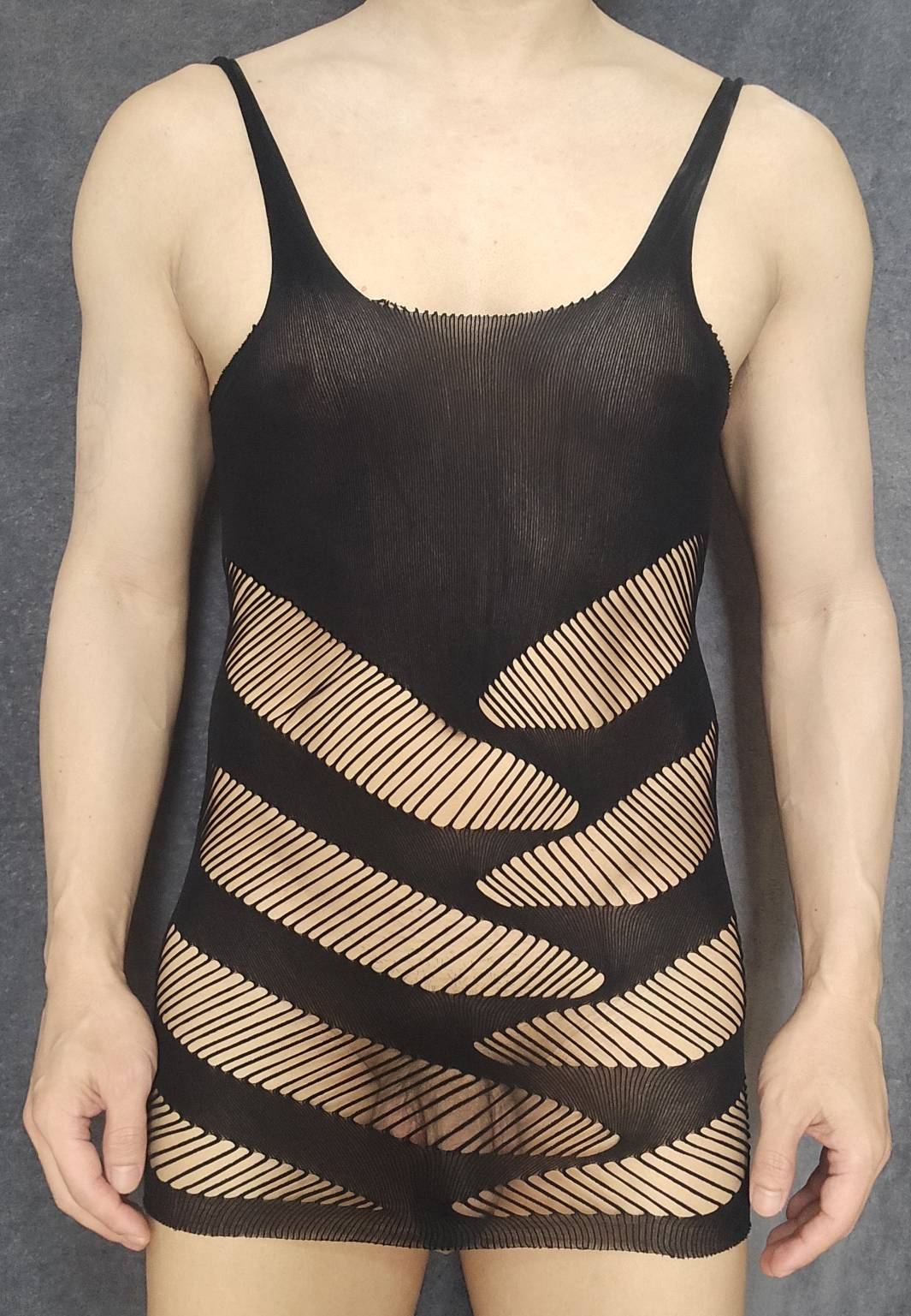 เสื้อกล้าม bodysuit แนบเนื้อ เนื้อผ้ายืดแบบผ้าถุงน่อง ถ้าสามารถใส่เป็นเสื้อกล้ามก็ได้ หรือดึงลงไปให้เป็นกระโปรงสั้นรัดรูปก้ได้ แต่ใส่แล้วเสียวทั้งสองแบบ