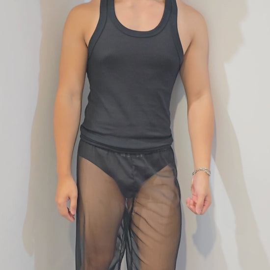 กางเกงสำหรับใส่นอน ใส่อยู่บ้าน ใส่ยั่วผู้ รุ่นนี้เป็นผ้าซีทรูยืด เนื้อผ้านิ้ว พลิ้วไหว ใส่แล้วเบาสบาย